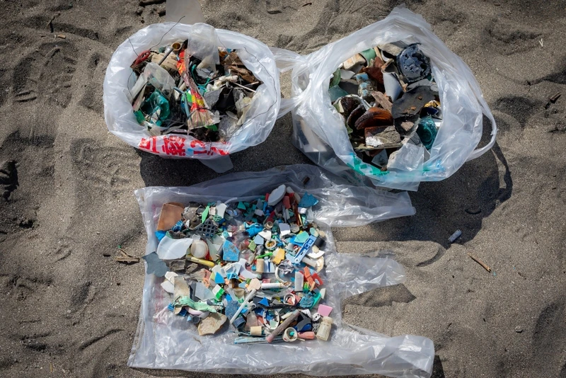 遠目からはきれいな海岸でも、いざ足元をみると色とりどりのプラスティック片が多数落ちていることに気づきます。