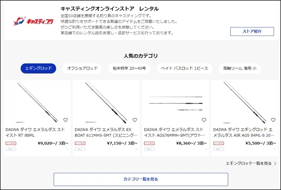 最近始まった「キャスティング」の釣具レンタルサービス。