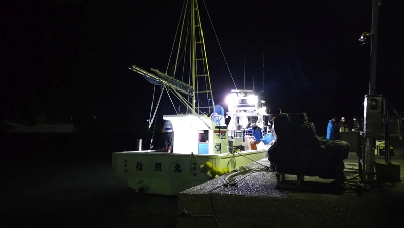 釣行当日(11月23日(火))、AM5:00頃、港に到着すると、既に多くの人たちが集まっており、期待が高まります。