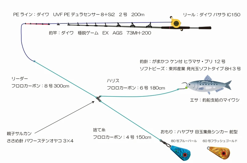 イワシを泳がせる餌釣りとスロージギングなどのルアー釣りが選べるとのこと。