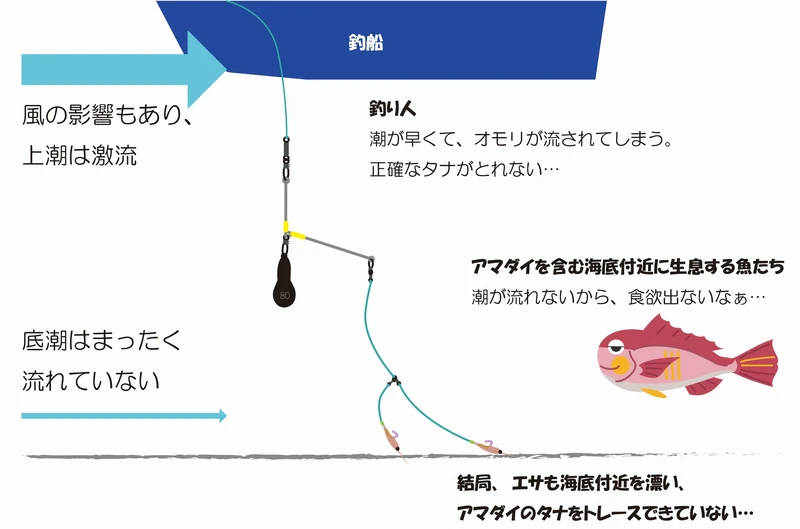 アマダイ釣りといえば、外道を釣って、その日の海底の潮の流れを想像して、