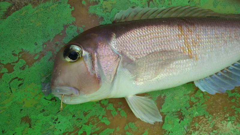 アマダイ釣りは、エサ取りや外道が多く、頻繁に付けエサのチェックが必要です。