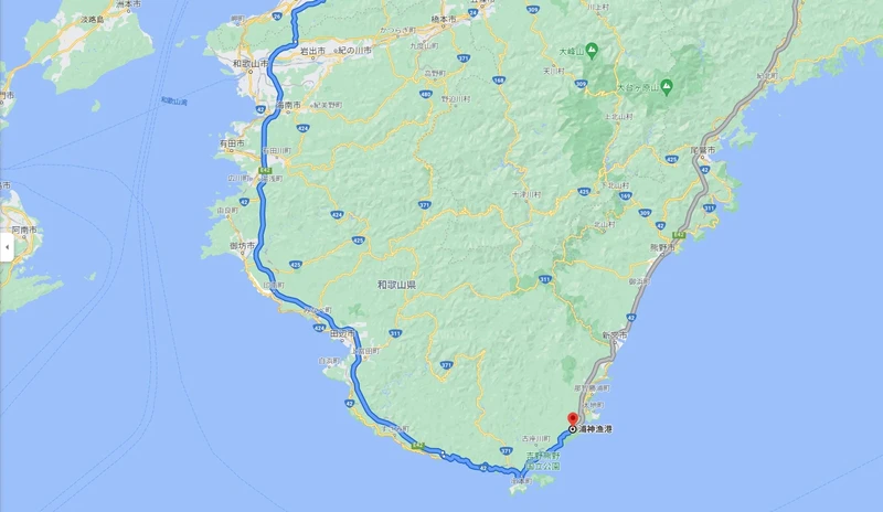 和歌山通って、白浜通って、串本越えて、どんだけ〜。