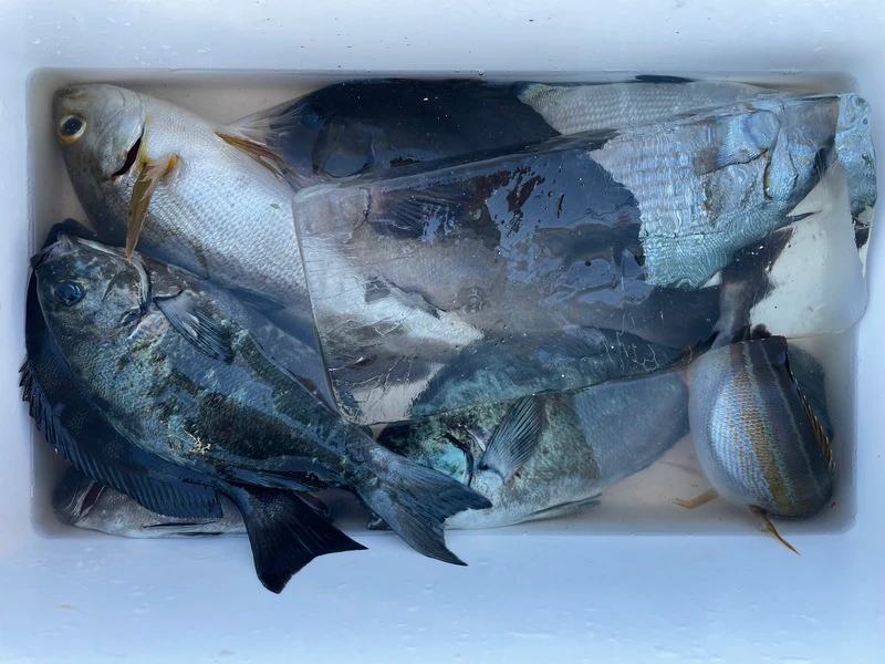 フカセの人たちはグレやヘダイを釣り上げますが、