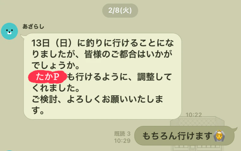 こんな形でサクッと釣行日が決定!
