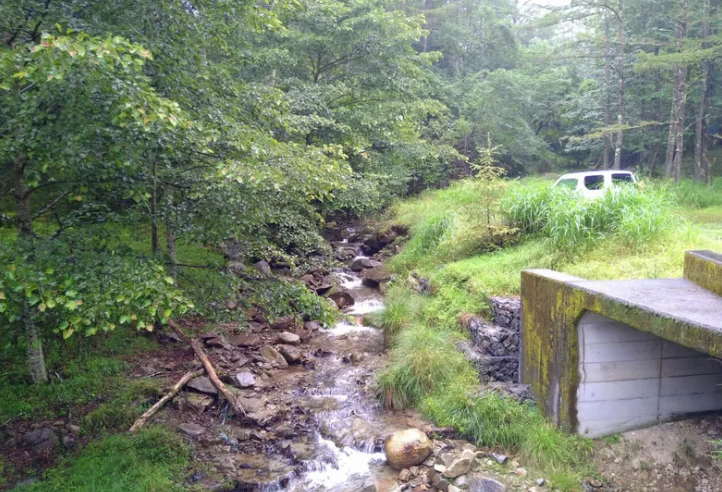 退渓点(渓流から撤退したポイント)の写真を撮影し