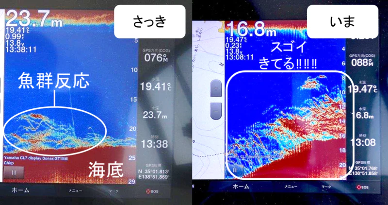 この魚群反応の違い!