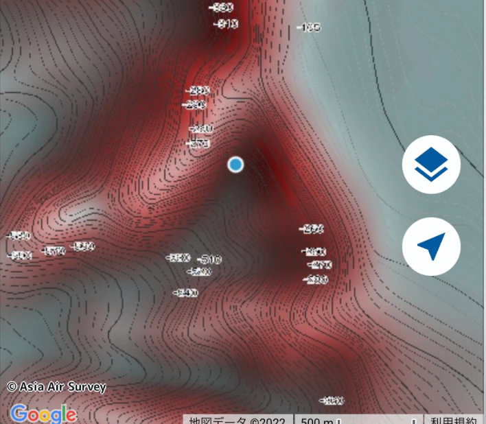 釣りドコの深場用赤い海底地形マップで見ても