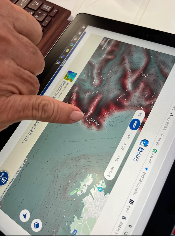 釣りドコの深場用赤い海底地形マップを見ながら