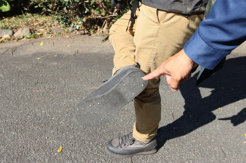 松村さん:「シューズは非常に重要です。とくに地盤が濡れている場所では、足元のスリップが原因で落水してしまう事例も多いです」。