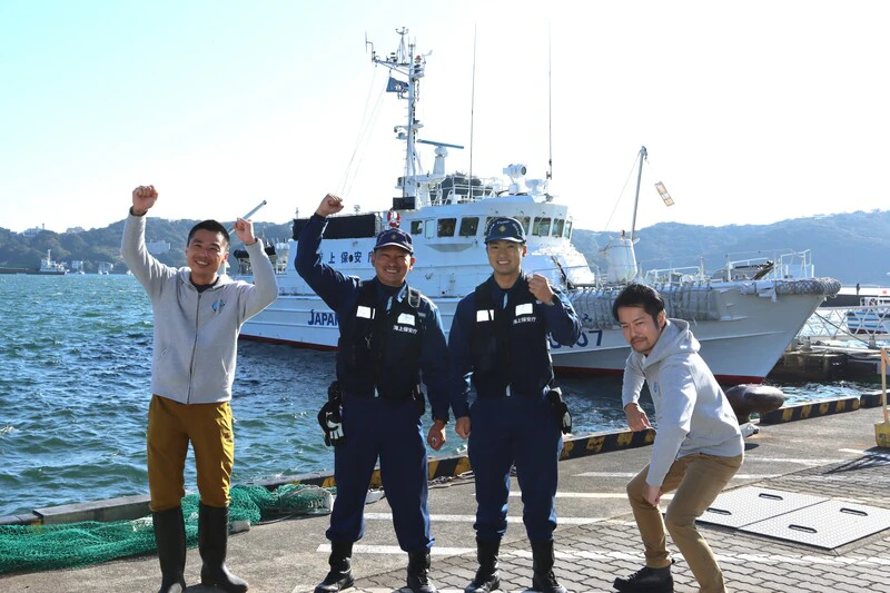 大川次長:「釣り人の方にもうひとつお願いがございます。岸壁で釣りをされているときに、近くに船が通った際、釣竿を一度上げていただきたく思います。船に釣り糸が引っ掛かってしまうと、釣り人の方は釣竿が海に落ちてしまいます。一方、船のスクリューにも釣り糸が絡まってしまい、甚大な被害が出てしまいます。あと、船の係留ロープに釣り針が引っ掛かってしまった場合は、必ず外して下さい。ロープを手繰り寄せる人が、釣り針で大ケガをしてしまいます。船の係留ロープは力強く且つ、手早く手繰り寄せるので、キズはかなり深くなります。みんなの海ですので、みんなで気持ちよく利用できるようにご協力いただけますと幸いです」。