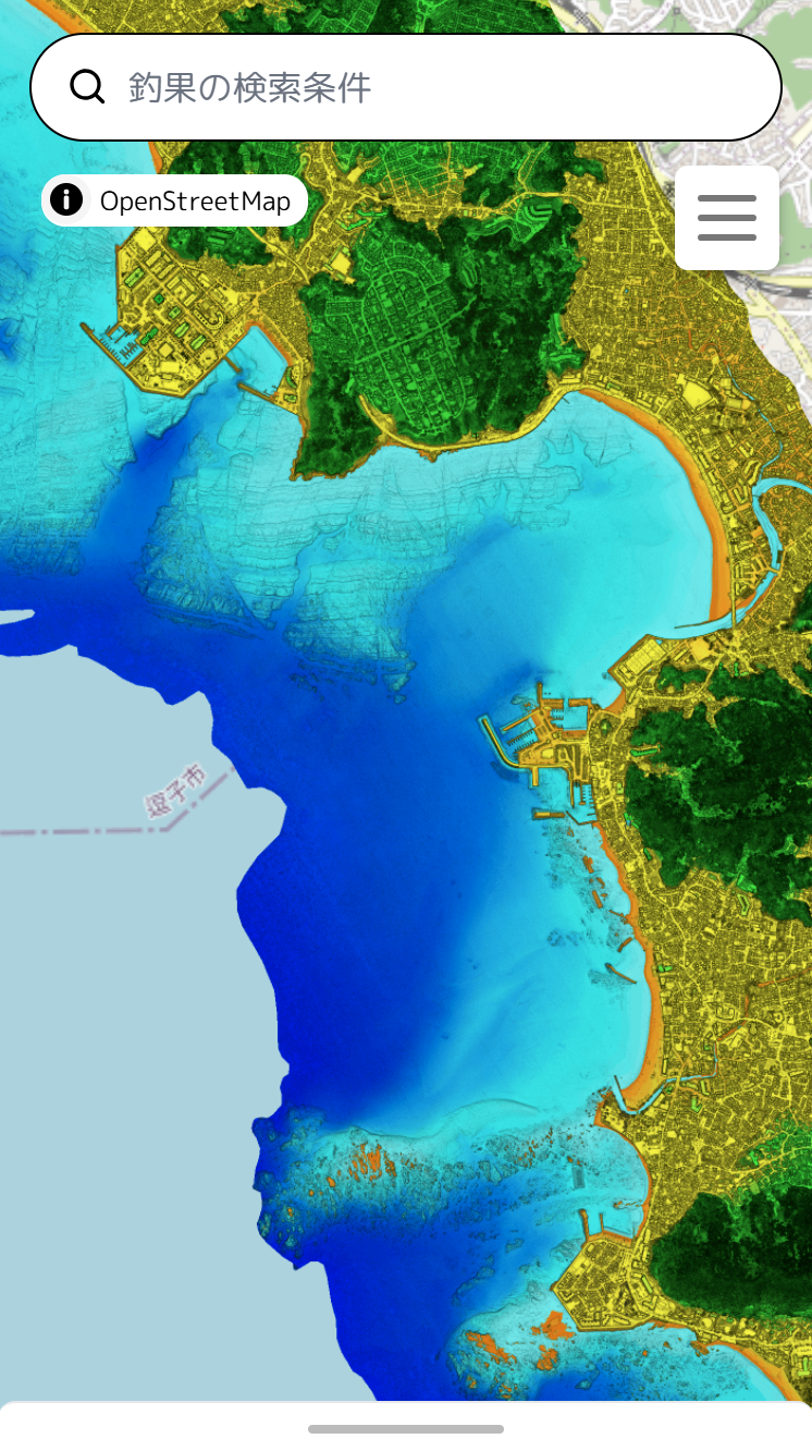 『釣りドコ』は、航空レーザ測深機(ALB)により取得した極めて詳細な海底地形図(水深段彩図)をスマートフォンやPC等からアプリのように操作できるWebアプリ。