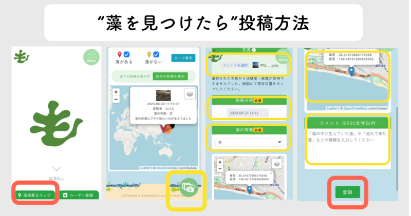 藻の目撃情報を投稿することで