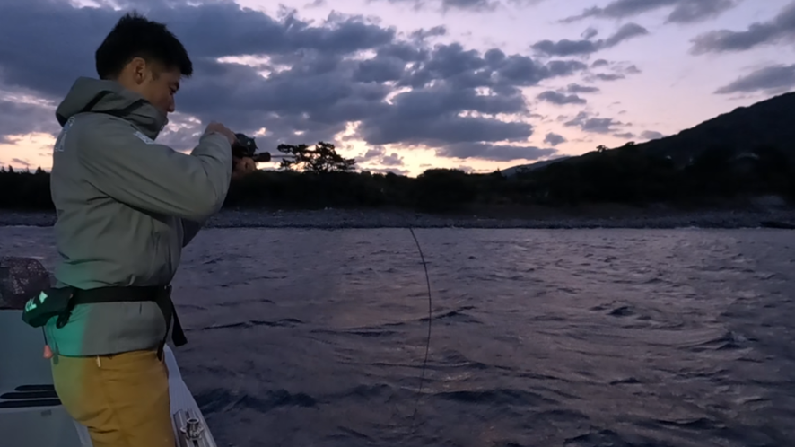 空がだんだんと白み始めたころ、海底付近で「ガツン!」と強いアタリ。