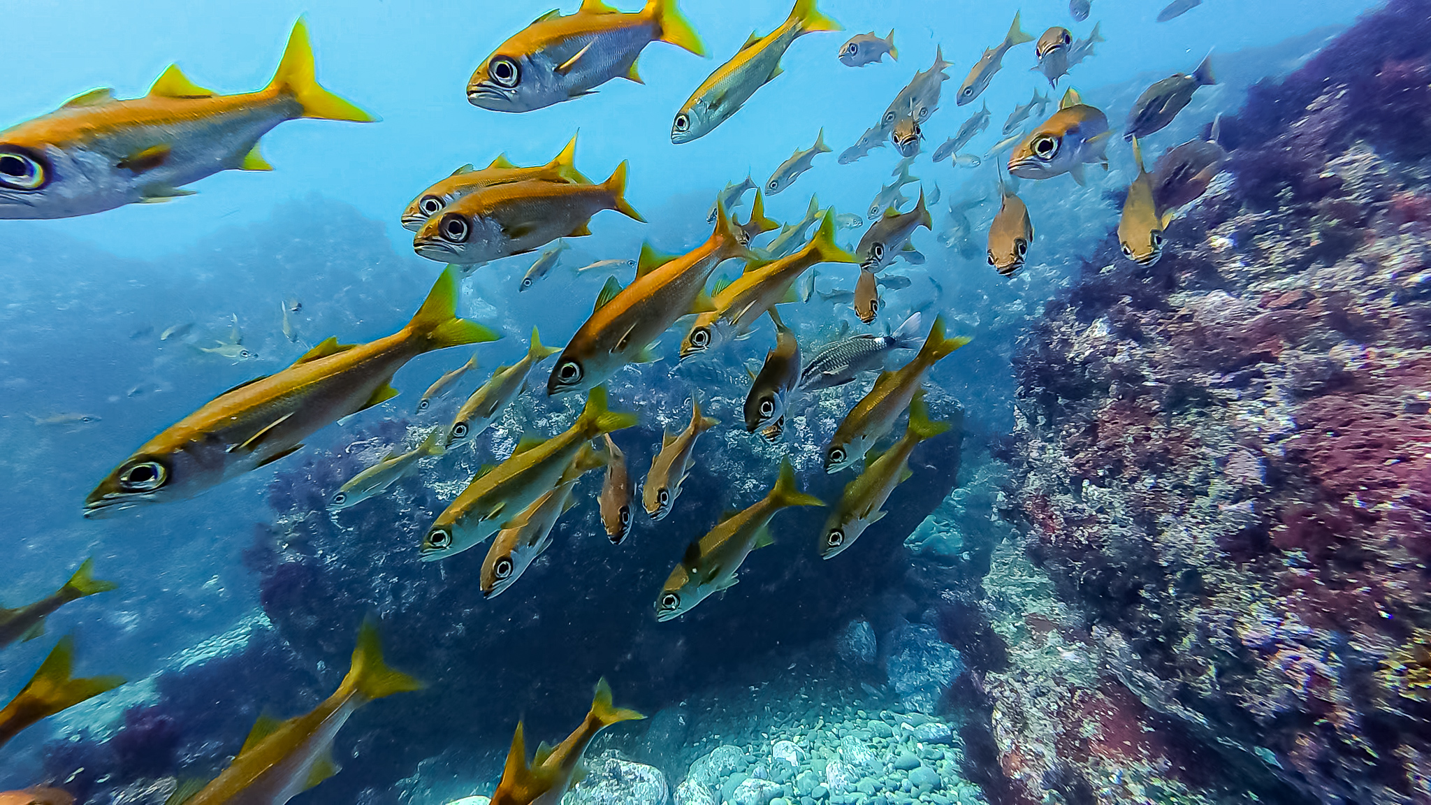 この映像も魚から1mちょっとくらいの距離で撮影。