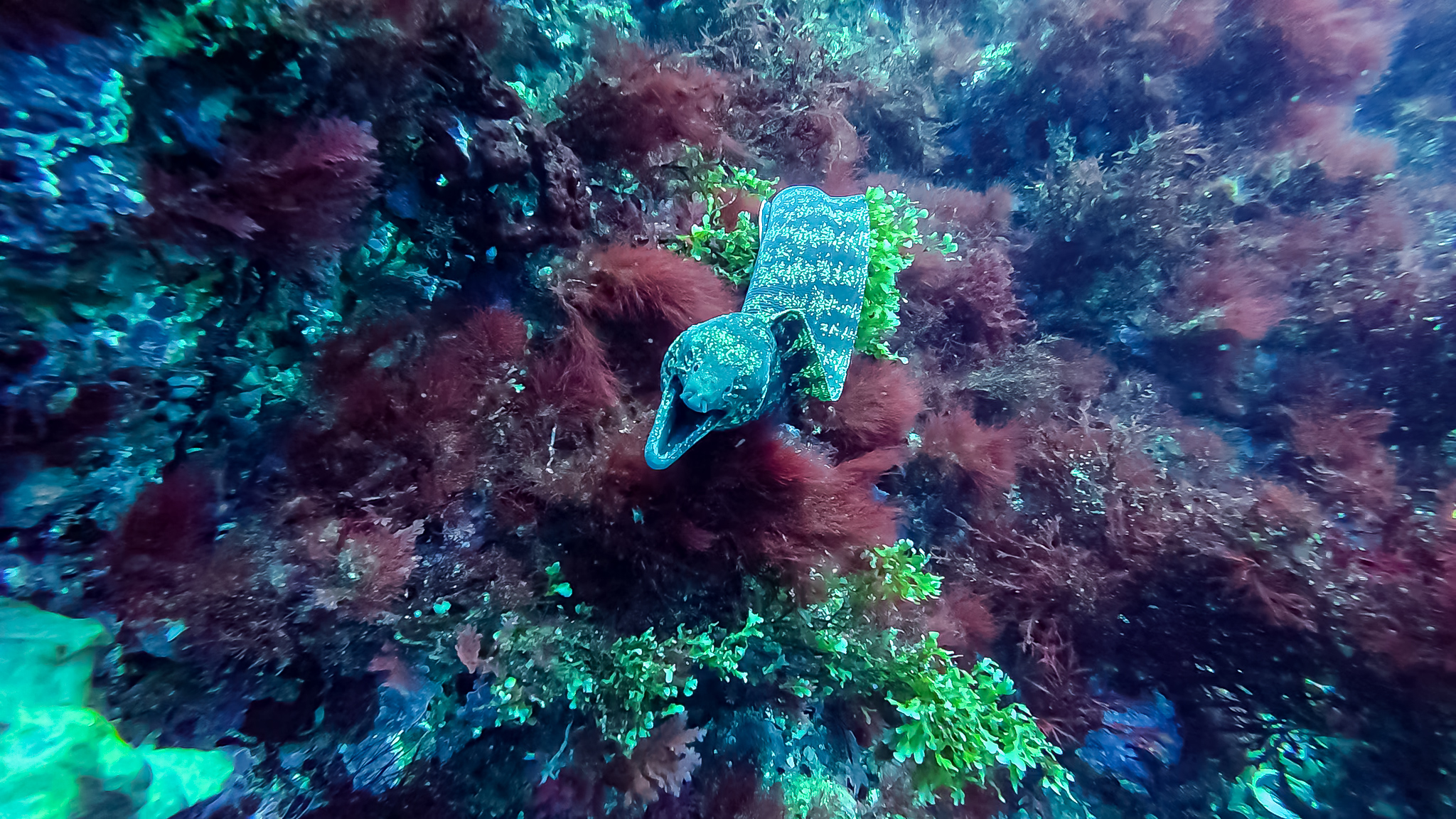 11月は姑岩にごっとり君が瀬渡しで入ってキビナゴを撒いていたので、匂いに釣られてウツボがニョロニョロ。