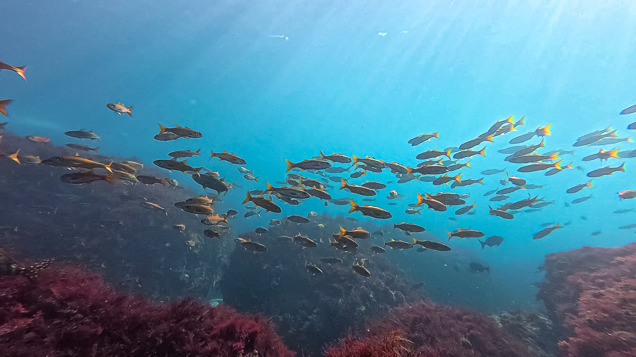 ⇒9月に引き続き海の中はかなり賑やか。とにかくトウゴロウイワシが多く、カマスも引き続き浅瀬で群れている。あと今月から浅場にムツの群れが入ってきた。