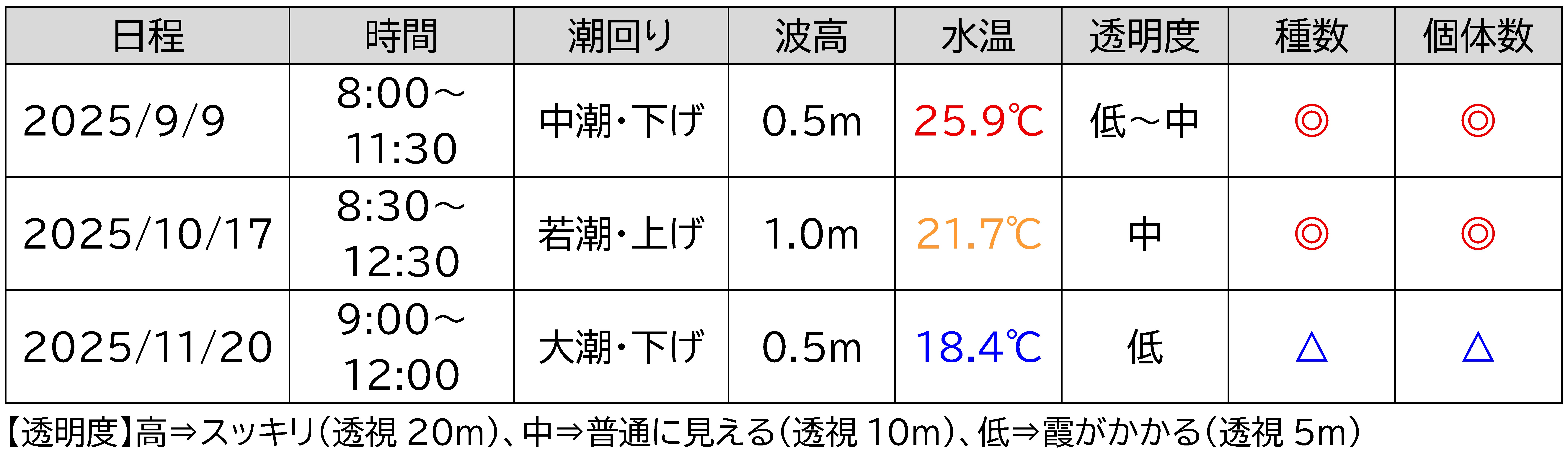 9月から11月の海の様子、いかがだったでしょうか。